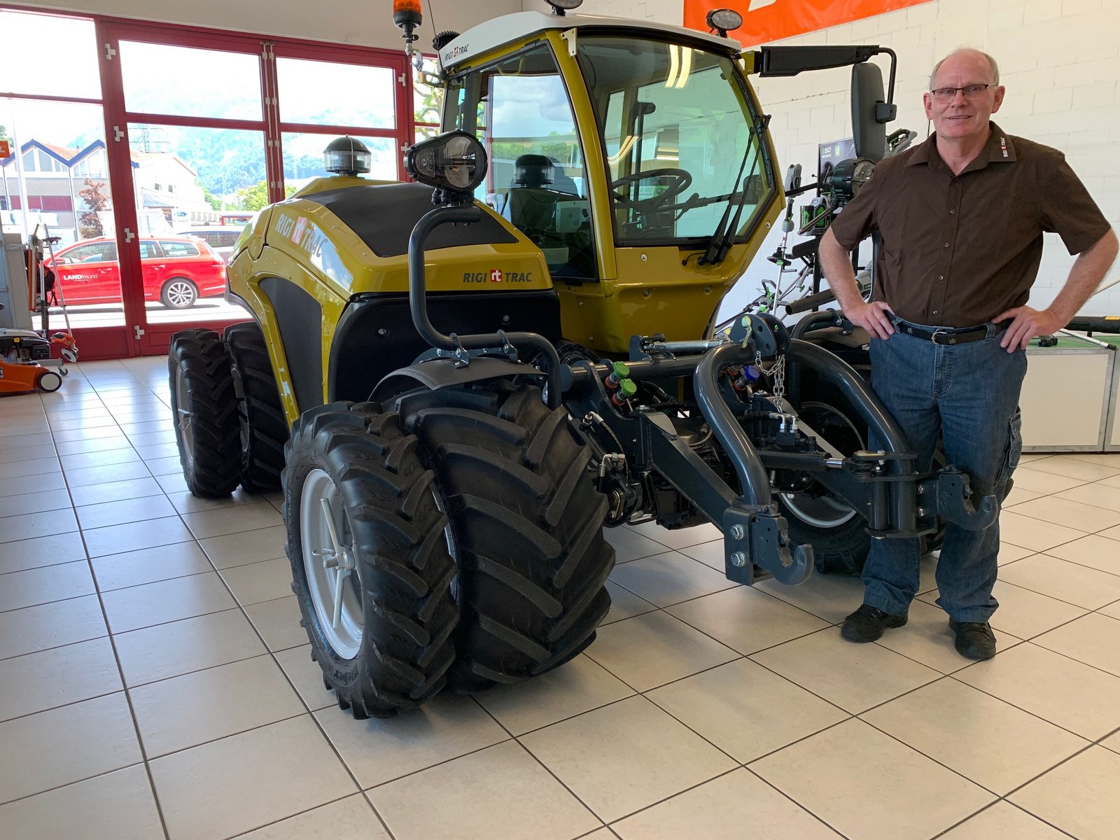 Der Prototyp wurde den Medien und den Händlern am Freitag 11. Juni 2021 erstmals präsentiert. Der Mähtraktor habe sich in vielen Einsatzstunden im Feldtest schon sehr bewährt, freute sich Sepp Knüsel über sein neuestes Kind. Entwickelt hat der Landmaschinenspezialist den neuen Rigitrac in den letzten vier Jahren, wiederum aufgrund vieler Kundenbedürfnisse. Bereits ist dies das fünfte Rigitrac Modell, einen weitern elektrisch betriebenen Traktor stellte Knüsel bereits für nächsten Herbst in Aussicht.