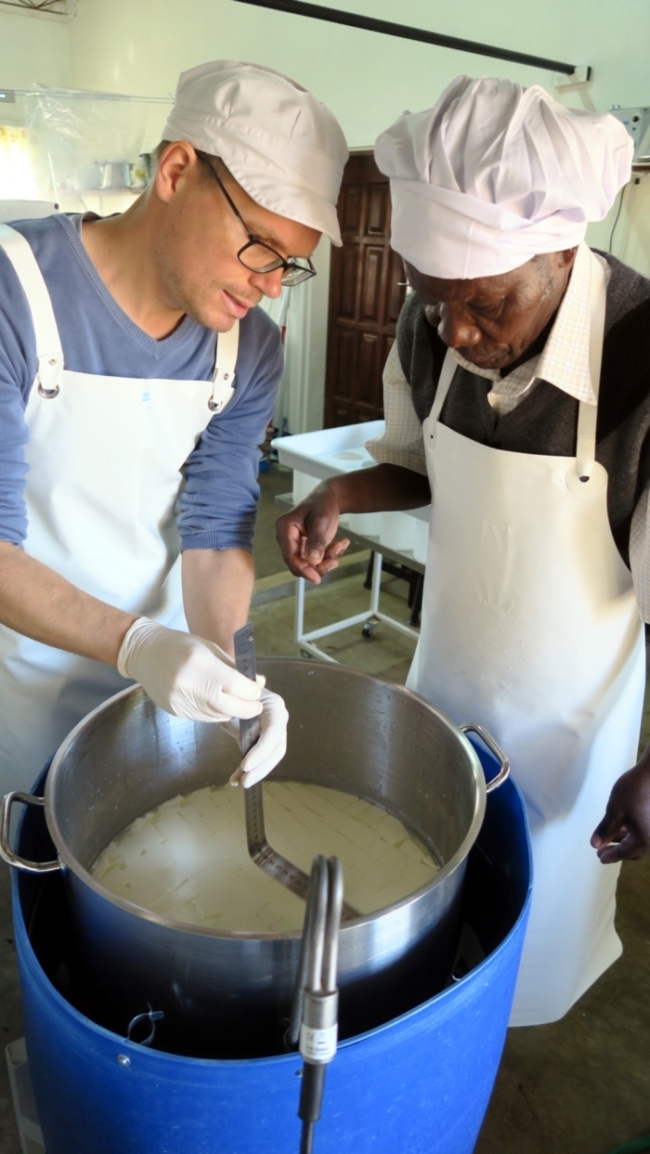 Mein Arbeitsalltag sieht zurzeit folgendermassen aus: um fünf Uhr morgens nehme die Milch entgegen, verarbeite sie zusammen mit meinem sambischen Kollegen zu Feta, Halloumi, Frischkäse, Süss- und Sauerrahm und Joghurt, reinige die Utensilien und die Molkerei, fülle ab, verpacke, drucke Labels, etikettiere, mache Produktionsaufzeichnungen, nehme Bestellungen entgegen, schreibe Lieferscheine und Rechnungen, bereite Bestellungen vor, fahre nach Lusaka zum Ausliefern, kaufe Verbrauchsmaterial, verschicke Mahnungen, plane den nächsten Tag... und dann versinkt die grosse, rote Sonne auch schon wieder in der sambischen Buschlandschaft am Horizont. Kurzum: „I'm running up and down“ (ich renne auf und ab) wie man hier sagt – und wäre eigentlich reif für die Insel. Aber eben: ein „Start-up“ ist kein Selbstläufer. Wäre ich weg oder krank, würde der Betrieb zum Erliegen kommen. Leider und hoffentlich nur vorerst.