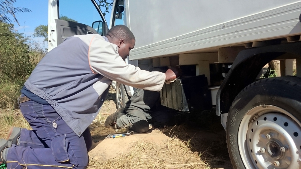 - Der KATC-Werkstattleiter fand es zu gefährlich, mit dem Tata auf der stark befahrenen Strasse wieder nach Lusaka in die Garage zu fahren. Stattdessen veranlasste er, dass ein Tata-Mechaniker nach Kasisi kam. Ich erfuhr, dass dieser den Tank reinigte und der Treibstofffilter ersetzt, das Problem auf der Testfahrt aber erneut auftrat.