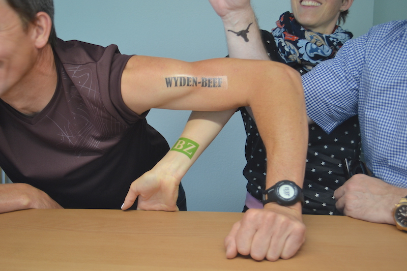 -- NO IMAGE --p>In der Verpackung mit den Tattoo-Folien hat es verschiedene Bögen. Zwei matte weisse Bögen und zwei klebende Folien auf grünem Trägerpapier. Zum Drucken benötigt man die matten weissen Papiere. Nach dem Bedrucken die Sujets mit dem glänzenden Bogen überkleben, grünes Trägerpapier abziehen. Gut andrücken. Dafür eignet sich beispielsweise die Stirnseite des Bostitches. Darauf achten, dass sich keine Luftbläschen bilden. Sujets auseinanderschneiden. Möglichst nahe am Sujet ausschneiden und Ecken abrunden. Hinweis: Eventuell entspricht die Tattoo-Folie nicht dem Format A4. In diesem Fall muss das Druckformat des Druckers unter Einstellungen angepasst werden.-- NO IMAGE --/p>