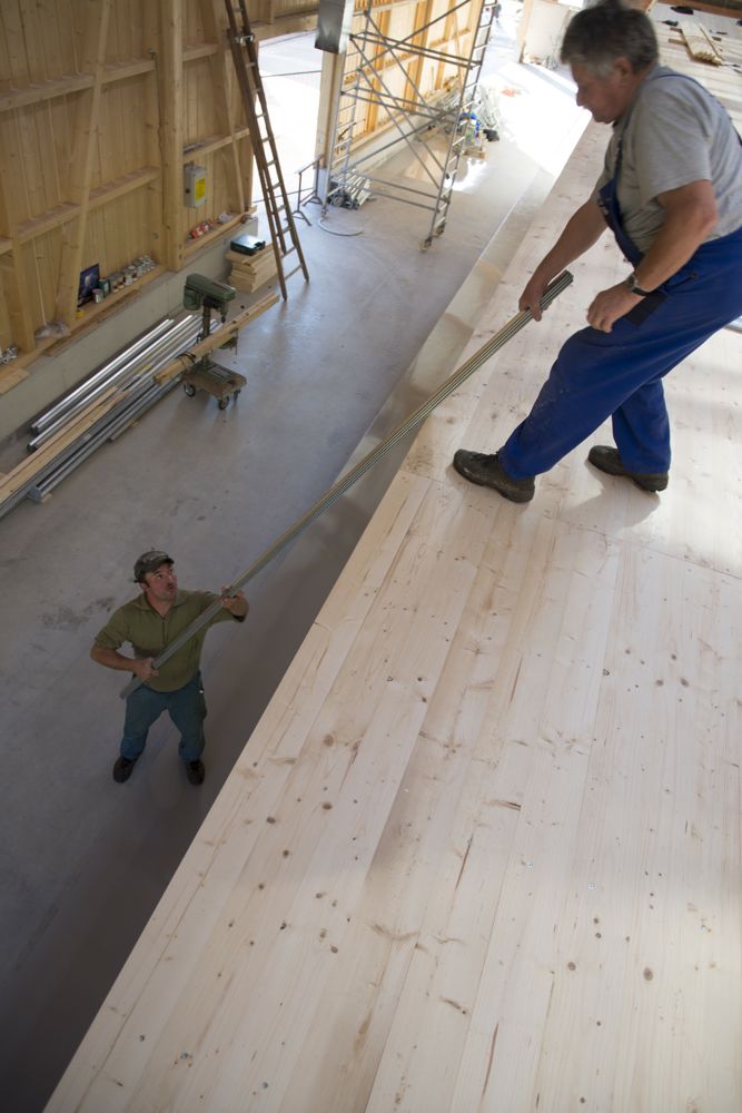 Vor 22 Uhr war Roman Hubers Arbeitstag selten zu Ende diesen Sommer. Tagsüber arbeitete er auf der Baustelle des neuen Laufstalls mit, und wenn die Bauarbeiter Feierabend machten, dann erledigte er die Arbeit auf dem Hof, die während des Tages liegengeblieben war. Dem Rest der Familie ging es nicht besser. Die drei Töchter packten mit an, wenn immer es Lehre und Arbeit ermöglichten, und auch der 9-jährige Nachzügler Cyrill war in jeder freien Minute auf der Baustelle.