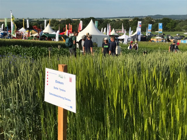 Schwerpunkte und Publikumsmagneten im Programm waren die Maschinenvorführungen und die schön stehenden Kulturen in den Versuchsparzellen, wobei die Eiweisspflanzen, etwa Eiweisserbsen und Ackerbohnen im gemischten Anbau prominent Platz einnahmen, was auch die Bedeutung ausdrückt, die man ihnen im Biolandbau zumisst.