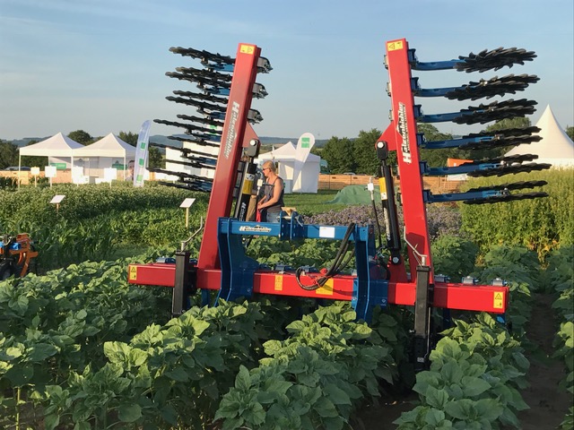Neben bewährtem Bodenbearbeitungs- und Unkrautbekämpfungsgerät waren auch Innovationen zu bestaunen. Bereits öfters gesehen hat man die diversen Jätroboter. Ziemlich überraschend war dagegen ein noch nicht serienreifes Projekt der Uni Kassel: Der Schneckenroboter, welcher in Eigenregie Schnecken lokalisiert und diese unschädlich macht. Aufgafallen sind uns auch ein Gerät zur Ablage von Kompost direkt neben der Saatkartoffel und ein mobiler Stand für die Weidemast von Kaninchen.