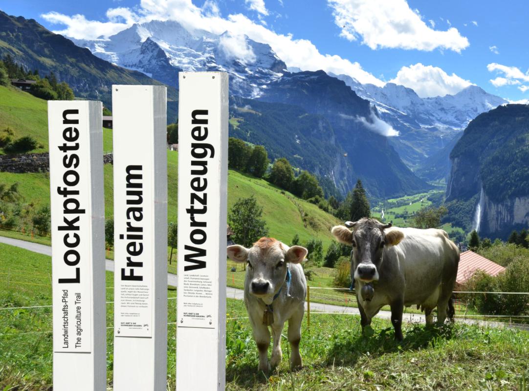 Wie die «BernerZeitung» berichtet, sind die Pfosten mit Informationsplaketten beschriftet, die über 35 landwirtschaftliche Themen informieren sollen. Begriffe wie Flotzmaul oder Trüffelrüssel sollen Wanderer neugierig machen und «anlocken».