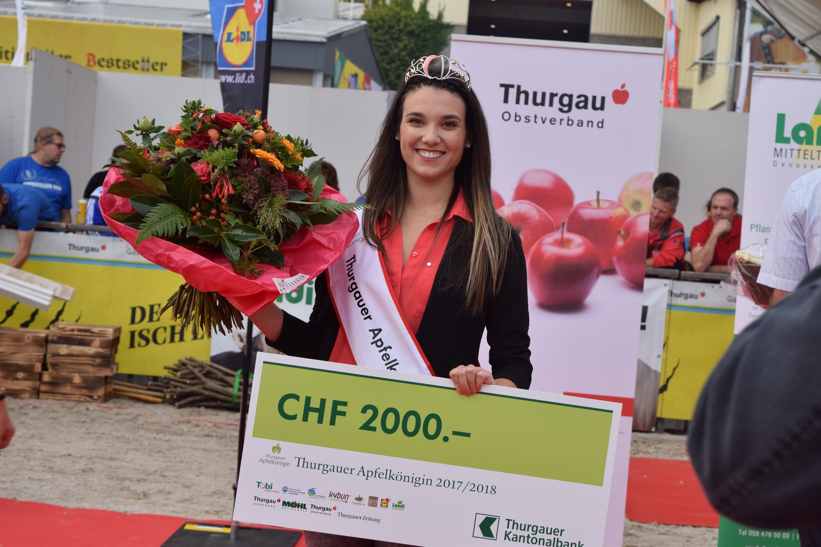 Für die diesjährige Wahl zur Thurgauer Apfelkönigin hatten sich 40 Kandidatinnen beworben. Sechs kamen in den Final und durften sich heute Nachmittag der zwölfköpfigen Jury und dem Publikum präsentieren. Es waren dies Marion Zweifel, Deborah Neuhaus, Iris Lieberherr, Tiziana Castauro, Sara Zaugg und Lea Rutishauser.