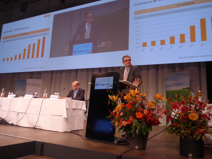Im abschliessenden Gast-Referat sprach der Vorsitzende der Coop-Geschäftsleitung, Joos Sutter zu den Delegierten. Er unterstrich die Bedeutung der Zusammenarbeit mit den Schweizer Bauern. Es gebe eine grosse gegenseitige Abhängigkeit zwischen Landwirtschaft und Detailhandel.