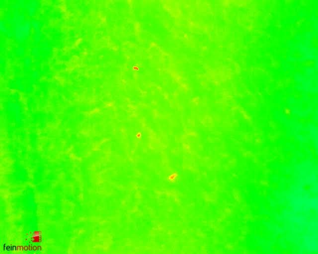 Eine mit einer Wärmebildkamera ausgerüstete Drohne fliegt vor dem Mähen eine Wiese ab. Die Kamera liefert Bilder, auf welchen anhand von Wärmequellen zu sehen ist, ob sich in der Wiese irgendwo ein Lebewesen versteckt hat. Die Jäger können so die Rehkitze gezielt aus der Wiese wegtragen.