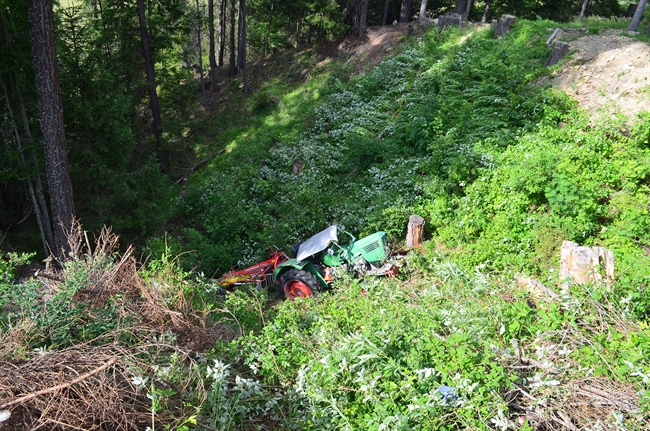 Die Frau war am Mittwoch mit dem Traktor am Heuen. Dabei geriet das landwirtschaftliche Gefährt am Rand der Wiese zuerst ins Rutschen und stürzte dann 30 Meter eine steile Böschung hinunter, wobei sich das Fahrzeug überschlug, wie die Polizei am Donnerstag mitteilte. Die Frau stürzte mit dem Traktor ab und blieb neben dem Fahrzeug liegen.