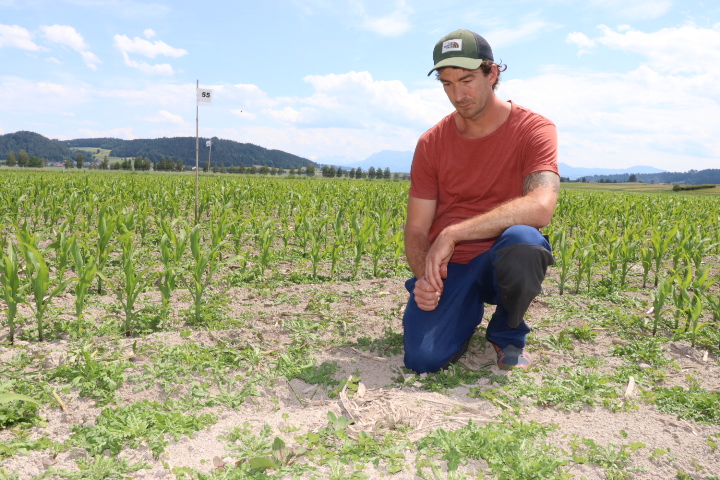 Rücksicht bedeutet, dass beim Güllen, der Unterfussdüngung und dem Säen die Nester sorgfältig umfahren werden. Die Mitarbeitenden der Vogelwarte Sempach dürfen die Gelege mitten im Maisfeld zum Schutz vor Fressräubern mit Weidenetz einzäunen. Vor dem Befahren des Feldes informiert der Bauer die Vogelschützer, damit sie die Zäune temporär entfernen und wenn nötig die Nester abdecken. Und dann eben der Verzicht auf Pflanzenschutzmittel. «Das Unkraut muss ich im Herbst wieder loswerden, bevor ich Gras ansäe», sagt Urs Kaufmann. Aber das sei machbar. Und jetzt schiesse der Mais in die Höhe, die Chancen stünden gut, dass er dem Unkraut davon wachse.