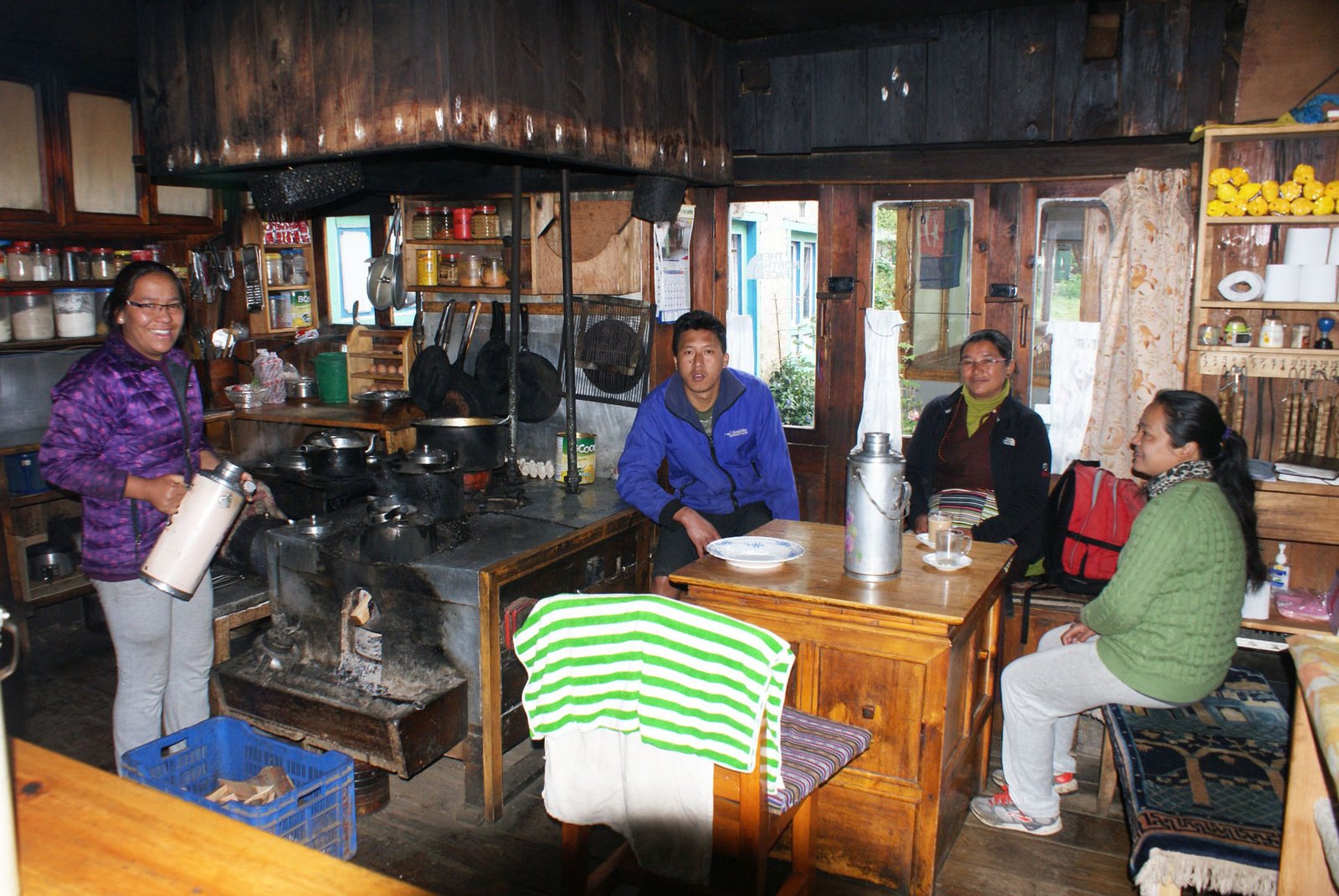 Besitzerin des ein Hektar grossen Landwirtschaftsbetriebs sowie des Monju Guest House ist Doma Sherpa, 65 Jahre alt. Die Hauptbewirtschafter beider Betriebe sind jedoch ihr Sohn, Pempa Dorsi Sherpa, sowie dessen Frau, Ngimale Sherpa, beide um die 40 Jahre alt. Auch deren beide Söhne, Nima Owdi und Prubasoma, 15 und 10 Jahre alt, helfen tatkräftig daheim mit, sofern sie nicht gerade die Schule besuchen.