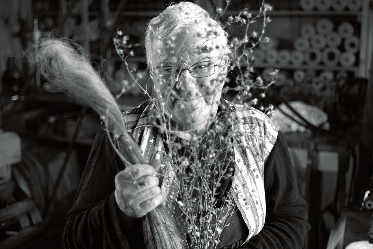 Die Schönheit des Leinens und die Einfachheit der Maschinen ist überwältigend. Die Webstühle wurden aus Eggiwiler Tanne gefertigt und viel mehr wurde nicht hinzugefügt. Es wird kein Strom benötigt, und es scheint sich seit Jahrhunderten nichts verändert zu haben. Johannes und seine Frau Ruth sitzen in dem Raum, ihre Finger gleiten durch das weiche Licht, ihre Füsse klopfen auf die Pedale. «Es ist», sagt er, «wie Klavierspielen».