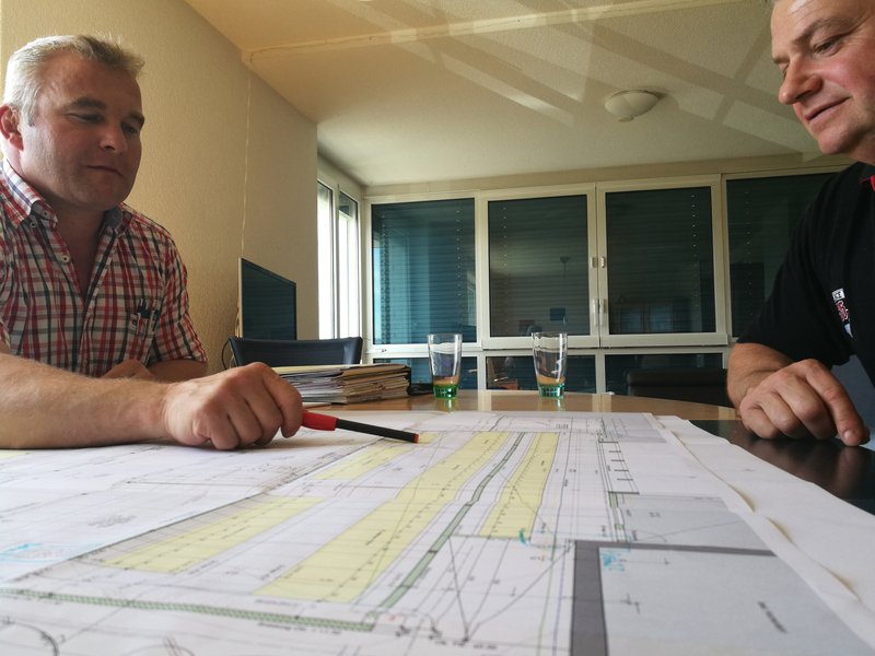 "Als Landwirt kann man das praktisch nicht alleine bewältigen", sagt Toni Schmutz. Am 25. April 2017 hat er mit Pius Bucher zusammen innerhalb von acht Stunden entschieden, wie er sämtliche Bauaufträge vergibt. "Es ist auch für mich ein kopflastiger Tag", sagt Bucher. Und fügt an: "Aber es ist ein sehr wichtiger Tag. Denn wenn man alle Unternehmer am gleichen Tag trifft, hat man den Überblick, kann vergleichen und entscheiden", sagt Bucher. Innerhalb von 24 Stunden könne man den Zuschlag geben. "Den anderen sagen wir ab. Schriftlich. Das sind wir den Handwerkern schuldig, die sich die Zeit genommen haben, um das Projekt zu rechnen", sagt Bucher.