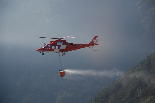 Es stellte sich heraus, dass nicht der Wald, aber ein Haufen Äste brannte. Der Helikopter löschte das Feuer in zwei Flügen. Da die Gemeinde Sennwald das verfügte Feuerverbot nicht gelockert hat, wird der Verursacher des Brandes angezeigt.