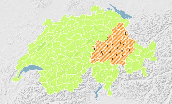 Das Bundesamt für Meteorologie und Klimatologie Meteo Schweiz hat deshalb für diese Regionen eine Regenwarnung der Stufe drei von fünf herausgegeben, wie auf der Internetseite zu sehen ist. Das heisst: Lokal steigt in den kommenden zwei Tagen die Wahrscheinlichkeit, dass Bäche anschwellen, Strassen unterspült werden oder lokale Überflutungen oder Hangrutschungen vorkommen.