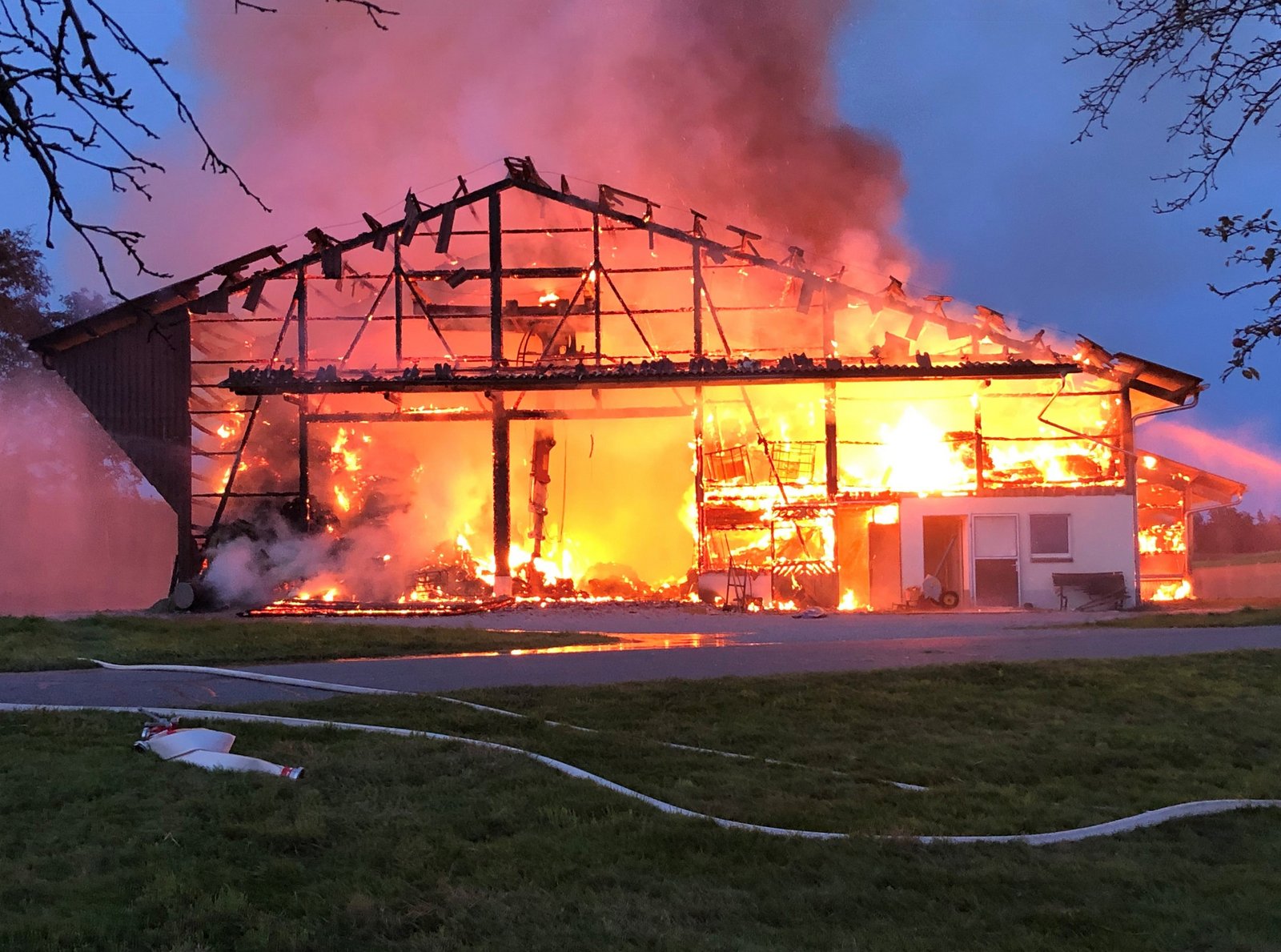 Der Brand ereignete sich am Donnerstagabend, wie die Kantonspolizei Thurgau mitteilt. Beim Eintreffen der rund 80 Feuerwehrleute habe das Gebäude in Vollbrand gestanden.