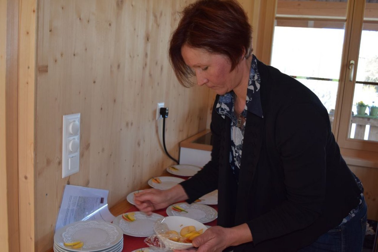 Der Gastgeberin Regula Fäh ist es hervorragend gelungen, Regionalität mit Tradition und Ursprung kulinarisch zu verbinden. Das Thurgauer Wahrzeichen, der Apfel, war in jedem Gang in irgendeiner Form vorhanden. Und dass auf dem Betrieb Hühner gehalten werden – auf dem Betrieb leben 6000 Legehennen –, kam auf der Speisekarte ebenfalls zur Geltung. Regula Fähs Kochkunst überzeugte und begeisterte alle Anwesenden und bewies, dass die Bäuerin wirklich fürs Leben gerne kocht.