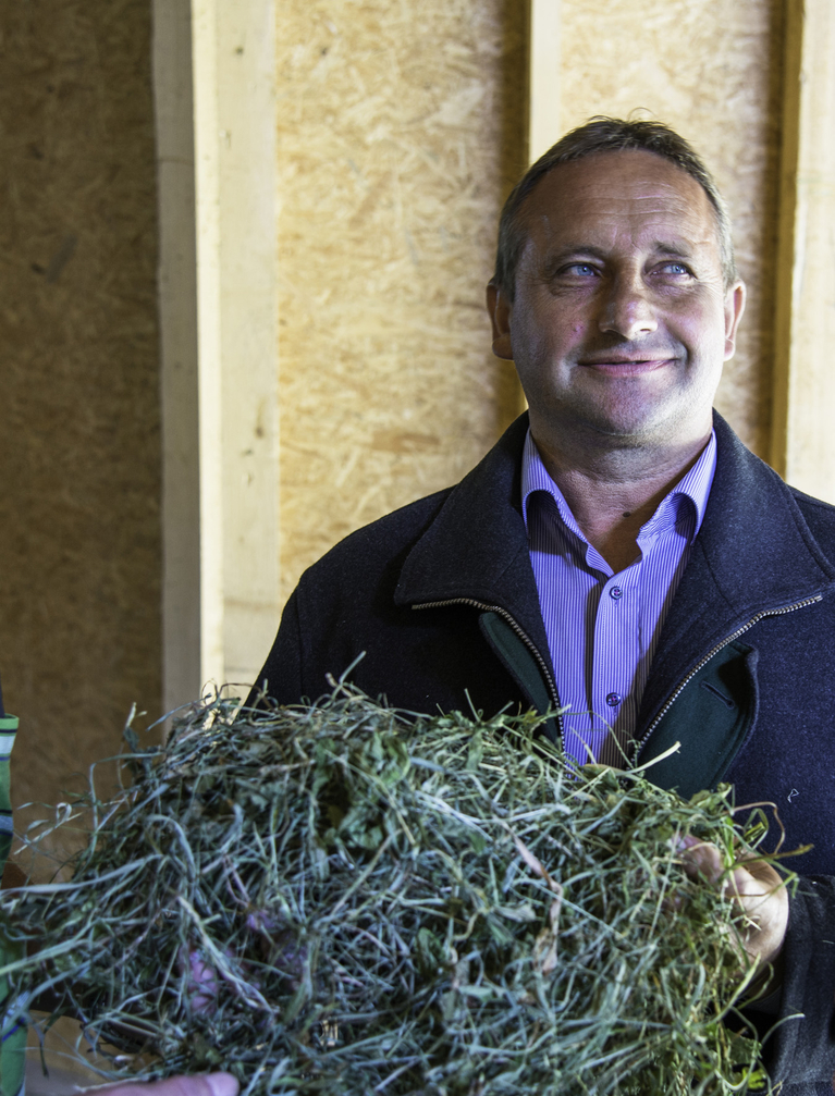 Neuhofer hält dem Journalisten einen Büschel frisches Bergheu unter die Nase. Er beginnt zu referieren: "Fütterungsversuche haben gezeigt, dass eine Heumilch-Kuh 1,5 Kilogramm mehr Trockenfutter aufnimmt." Der Anteil an wertvollen Omega-3 und -6 Fettsäuren in der Milch sei nachgewiesen höher als bei der Fütterung mit Maissilage. Bei vielen Heumilchbauern stehen Heubelüfter im Einsatz. Dank der Belüftung könnten die Konservierungsverluste minimiert werden. "Das belüftete Heu enthält 40 Prozent pansenstabiles Rohprotein", erklärt Neuhofer.