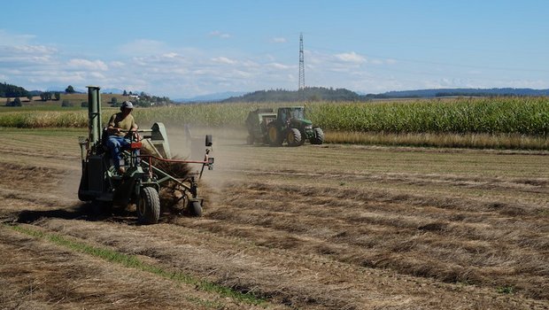 Als in den 1970er-Jahren Baumwolle und synthetische Stoffe auf den Markt drängten, bedeutete dies den endgültigen Genickbruch des Flachsanbaus in der Schweiz. In den letzten sieben Jahren haben ein paar wenige Bauern den Anbau von Faserlein aber wieder für sich entdeckt. Auf 7,5 Hektaren produzieren sie im Endeffekt rund fünf Tonnen Leinengarn und als Koppelprodukt 500 bis 800 Kilogramm Leinsamen pro Hektare.
