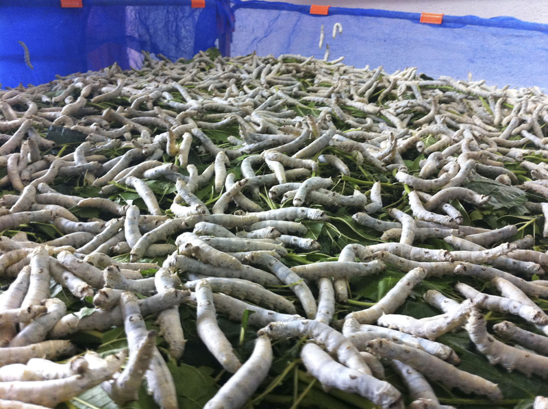Die Produktion von Seide ist ein komplexer Prozess. Um den für die Seide verantwortlichen Maulbeerspinner - einen Nachtfalter - zu füttern, braucht es Blätter der weissen Maulbeere. Denn nur diese werden vom Maulbeerspinner gefressen. Die Landwirte bauen deshalb diesen Baum an.