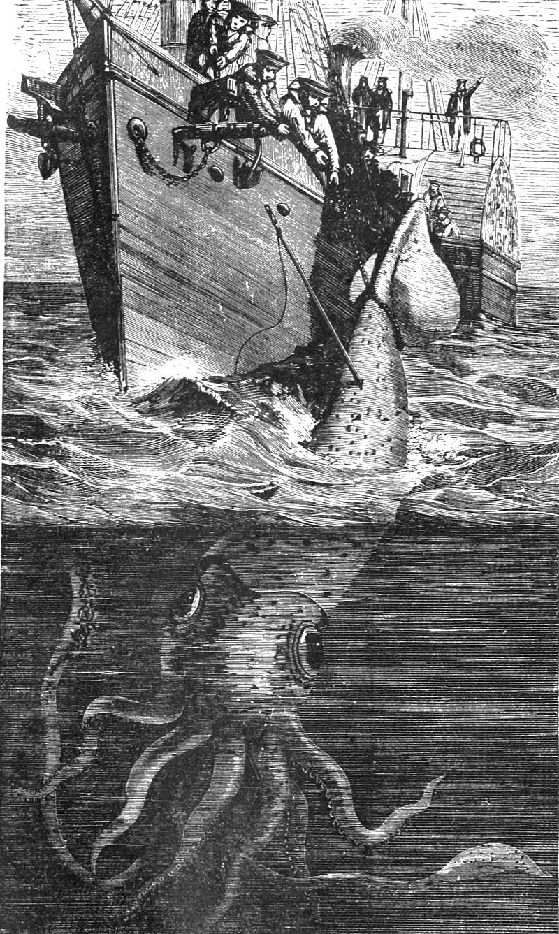 Riesenkalmare leben normalerweise in der Tiefsee und verfügen über acht Arme und zwei lange Tentakel sowie riesige Augen. Um sie ranken sich viele Seemanns-Legenden, oft werden sie als vielarmige Meeresungeheuer bezeichnet.