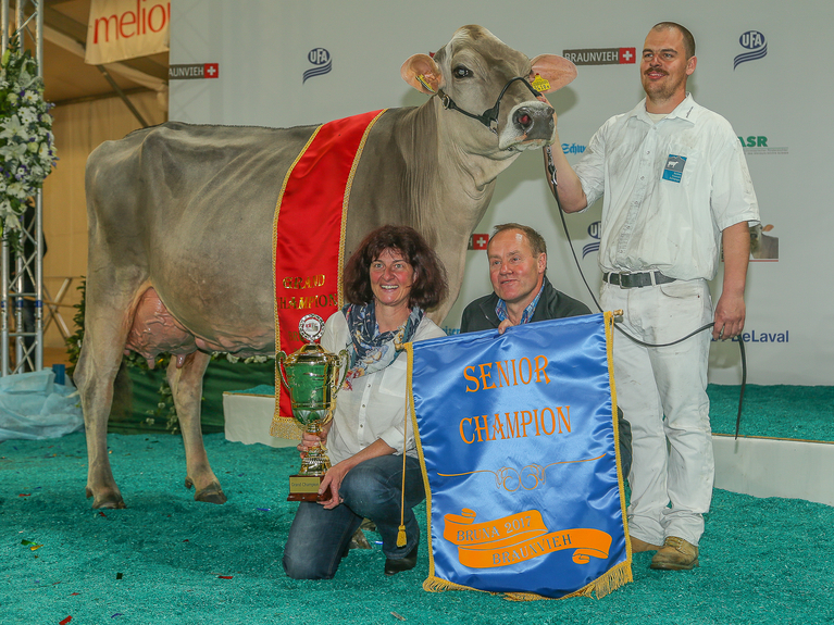 Jongleur Elisa Ex 96 (Euter Ex 97) ist eine Ausnahmekuh. Wenn man Preisrichter und Chefexperte Stefan Hodel zuhört, widerspiegelt Elisa genau das Zuchtziel der modernen Braunviehkuh. Mit den Worten: «Fantastische Kuh, welche europaweit gewinnen kann», wurde Elisa der siebte Championtitel in Folge zugesprochen. Doch was steckt hinter diesen Erfolgen?