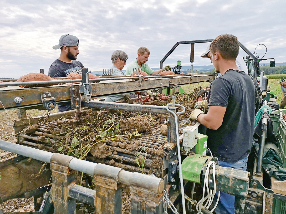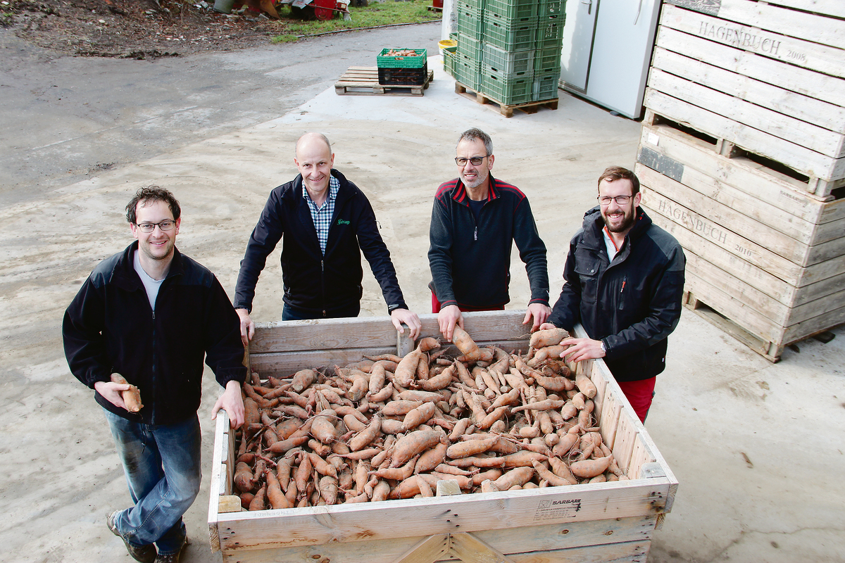 «Bisher standen bei uns für die Süsskartoffel-Ernte rund 30 Personen pro Tag im Einsatz», erzählt Christoph Hagenbuch aus dem aargauischen Oberlunkhofen. Gemeinsam mit seinem Cousin Sebastian baut er seit fünf Jahren Schweizer Süsskartoffeln an. Dieses Jahr gelang Hagenbuchs mit der Inbetriebnahme einer Süsskartoffel-Erntemaschine eine wichtige Verbesserung. Betriebsspiegel Name Hans und Christoph Hagenbuch Ort…