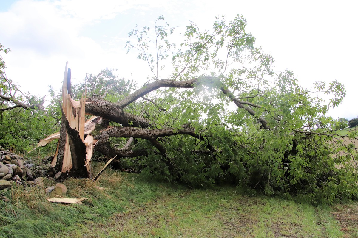 In der intensiven Hagelgewitterzelle waren zudem starke Sturmböen eingebettet, wie abgeknickte oder auch umgeworfene Bäume im Wald und in der Flur zeigen. Vereinzelt sorgte der Sturm für abgedeckte Hausdächer. Zudem wurden Starkniederschläge verzeichnet, wo innert kürzester Zeit 30 und mehr Millimeter Regen fielen.