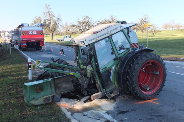 Ein 30-Jähriger fuhr um 15 Uhr mit seinem BMW auf der Romanshornerstrasse hinter einem weissen Auto und einem Traktor in Richtung Wittenbach. Auf Höhe Lörenmoosstrasse setzte er zum Überholen an. Während dem Überholmanöver bog der Traktor links ab und kollidierte mit dem Auto, schildert die Kantonspolizei St. Gallen den Unfall. Das Auto wurde ins angrenzende Wiesenbord geschleudert.