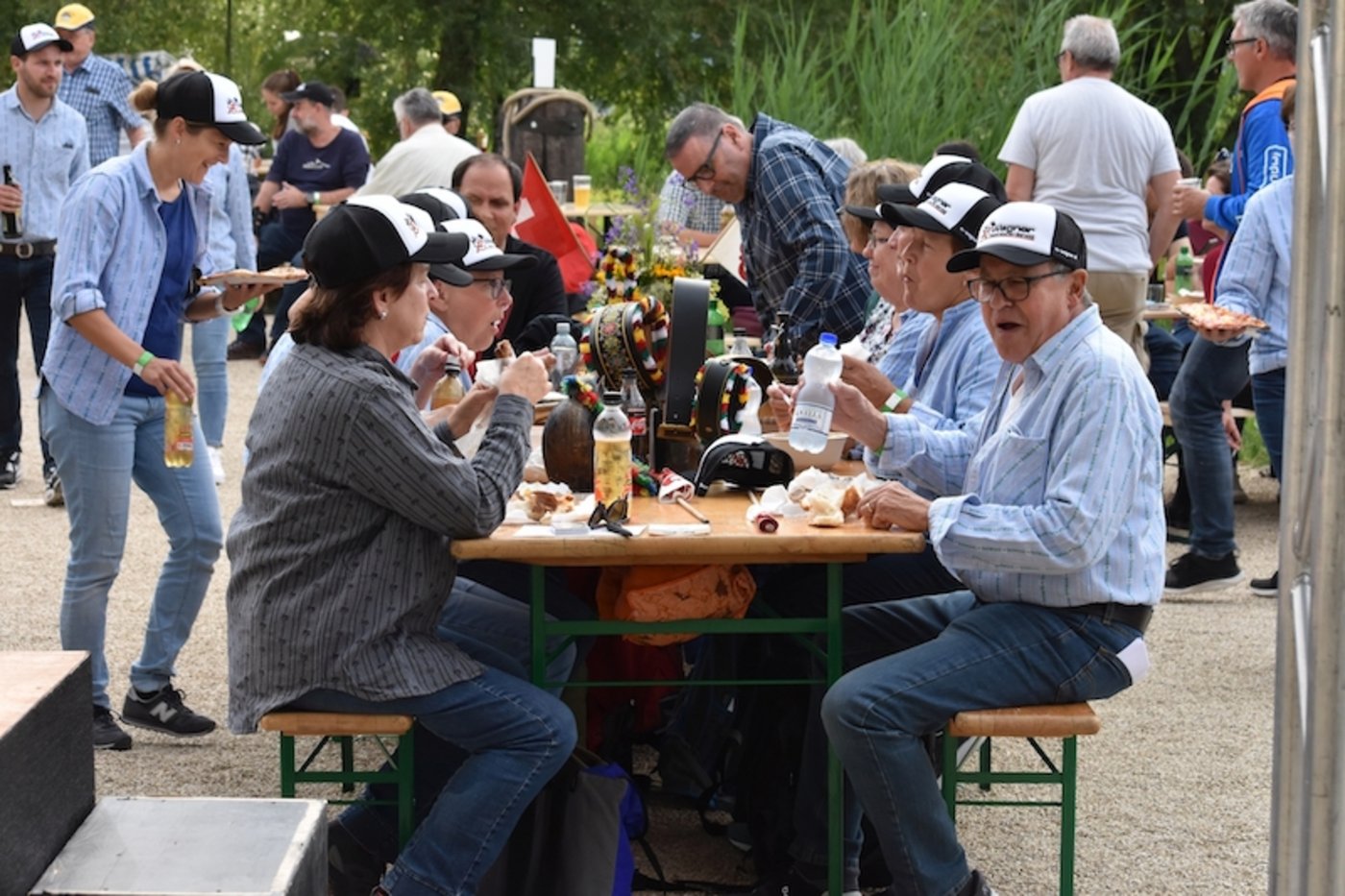 Den ersten Donnschtig-Jass hat die Familie Wagner aus Kerns OW gegen die Familie Kreuzer aus Glis VS gewonnen und konnte einen 1000 Franken Gutschein für ein Familienessen mit nach Hause nehmen. «Die spielen nach dem Motto ‹Kein Kollege am Tisch›», sagte Erich Schädler, der mit fünf älteren Jass-Damen vom Einsiedler Differenzler-Jassclub angereist war. Seit Schädlers Sohn Kilian vor zehn Jahren als elfjähriger Bub mitgejasst hat und die Veranstaltung mit dem Sieg nach Einsiedeln holte, war die Jassgruppe etwa 50 Mal live beim Donnschtig-Jass dabei. Und seit die Einsiedler Fans in Thun einmal kräftig verregnet wurden, haben sie einen braunen Sonnenschirm mit Lichterkette dabei, der zu ihrem Markenzeichen wurde. «Der Salzi hat das gemerkt und uns in der Sendung schon einmal vorgestellt», sagte Schädler.