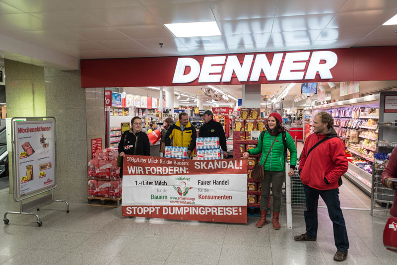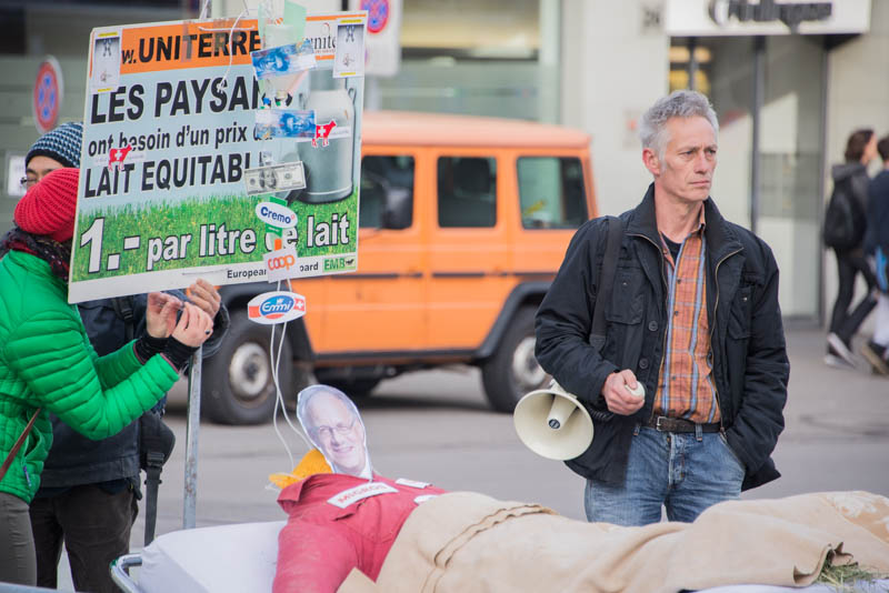 Bei der sogenannten Molkereimilch, welche zu Trinkmilch, Rahm, Joghurt, Butter und Milchpulver verarbeitet wird, liegt der Produzentenpreis heute meist bei 49 oder 50 Rappen. Dieser Preis deckt laut Uniterre nur knapp die Hälfte der Produktionskosten, trotz Direktzahlungen.