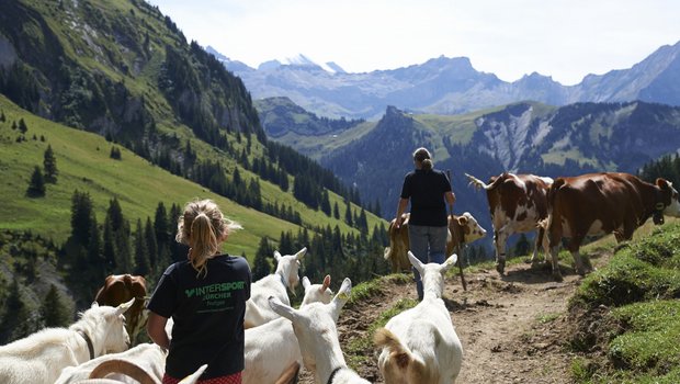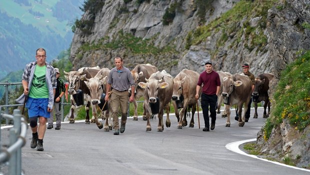 Am Donnerstag ging die Familie Frank Amstutz aus Mont-Tramelan z Bärg. Mit 56 Kühen ging es auf die Wengneralp im Berner Oberland. Die 13 Kilometer Fussmarsch war nicht nur für die Tiere, sondern auch für die Treiber eine grosse Herausforderung.