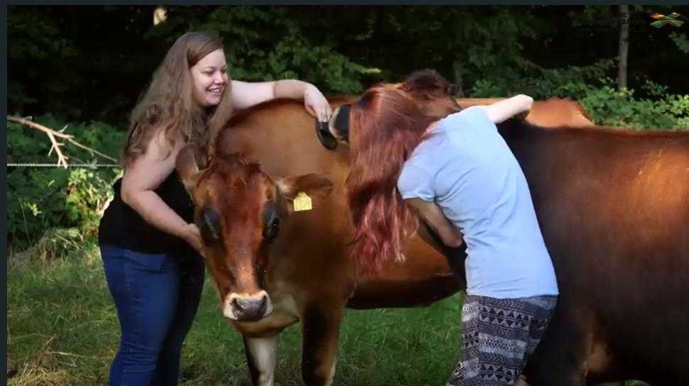Die junge Bauerntochter und Tiermedizin-Studentin will Kuhkuscheln nun auch hierzulande bekannt machen. Ein Video von «BuureTV.ch» stellt ihr ungewöhnliches Projet vor.