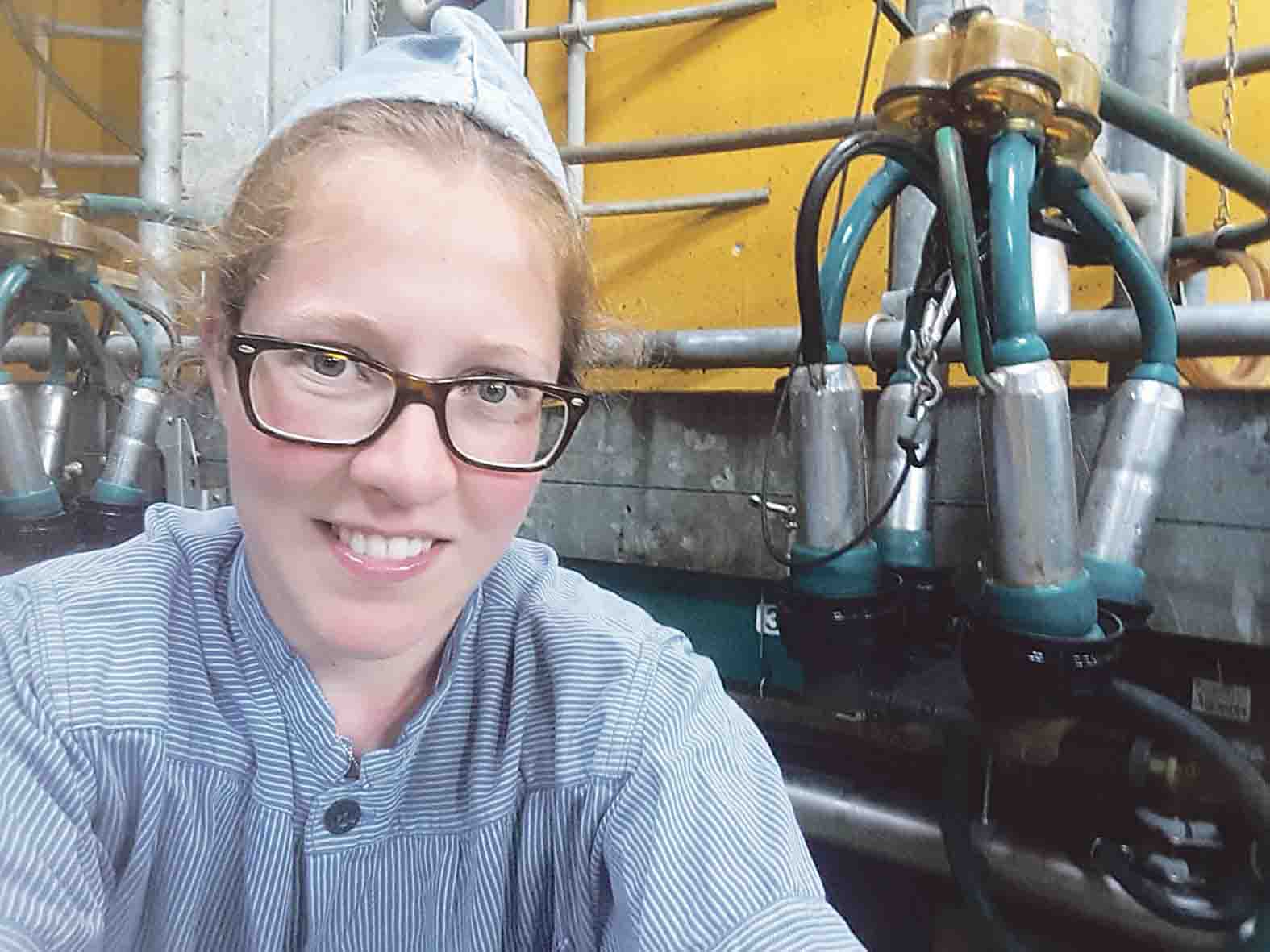 Zum Glück helfen mir Franziska Schärer und Philipp Jufer. Die beiden führen, zusammen mit zwei weiteren Landwirten aus dem Dorf, einen Gemeinschaftsstall mit rund 70 Kühen. Die zwei geben mir praktische Tipps und übernehmen die schwierigen Fälle. So lerne ich an meinem ersten Melkabend, wie ich die Zitzenbecher steuern kann, um zielgenau die Zitze zu treffen. Das Melken braucht volle Konzentration. Ich kümmere mich um Kuh nach Kuh, als plötzlich bereits die letzte kommt.
