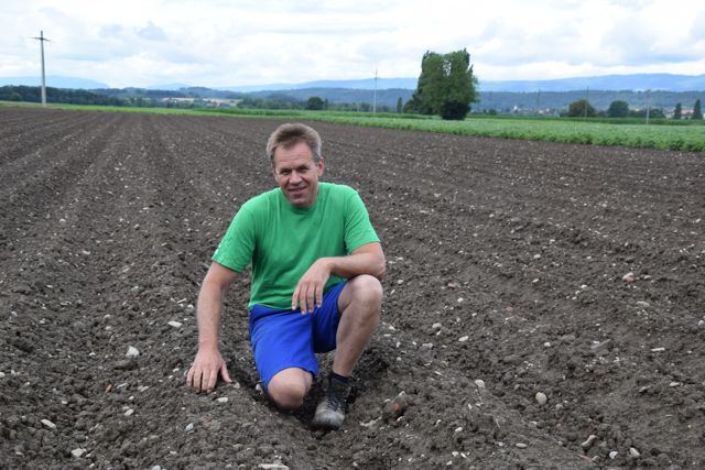 Auch Ernst Marti aus Kallnach BE schaut besorgt zum Himmel. «Erst vor vierzehn Tagen konnte ich meine letzten Kartoffeln pflanzen. Das Feld war einfach zu nass, nicht befahrbar», sagt er nachdenklich. Fast drei Hektaren der Sorte Agria. Ob daraus etwas werde, könne er erst im Herbst sagen. «Wenn sich das Wetter endlich von der guten Seite zeigen würde, kann man den zeitlichen Rückstand noch aufholen», ist Marti überzeugt. «Die Kartoffeln brauchen zirka 100 Tage bis man sie ernten kann, das wäre Mitte Oktober, was noch im Rahmen wäre.» Insgesamt pflanzen Martis auf 12 ha Kartoffeln an. Die Sorten Agria, Agate, Fontana, Challenger und Annabelle. Rückblickend betrachtet haben die Kartoffeln dieses Jahr einen Rückstand von zirka vier Wochen.