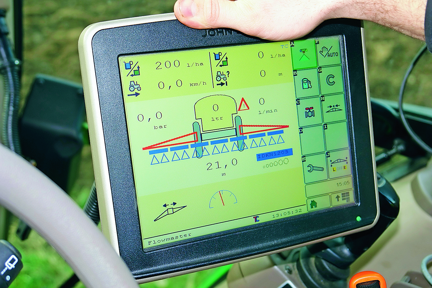 Praktisch ist auch die automatische Balkenbefüllung. «Gerade in diesem Bereich kann mit alten Spritzen viel Schaden angerichtet werden», erklärt Ernst Bänninger und verdeutlicht: «Früher liess man oft am Strassenrand mehrere Liter Brühe durchlaufen, bis der ganze Balken gefüllt war. Das gibt es bei dieser Spritze nicht mehr: Sie braucht 18 Liter, bis alle Düsen befüllt sind. Der Wert wird für diesen Spritzentyp berechnet, stimmt aber ziemlich genau. Der Balken wird also gefüllt, ohne dass die Düsen Mittel versprühen. Wenn die Leitungen bis zu den Düsen voll sind, sehe ich das am Terminal und kann in die Parzelle hineinfahren.»