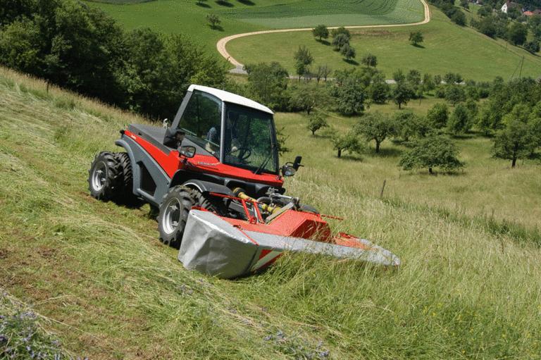 Zweiachsmäher sind grundsätzlich sehr hangtauglich. Beim Mitführen eines Zusatzgerätes wird der Schwerpunkt verschoben und das Fahrverhalten kann beeinträchtigt werden. Gegengewicht kann hier Abhilfe schaffen. Der Fahrerschutz ist heute weitgehend vorhanden und akzeptiert.