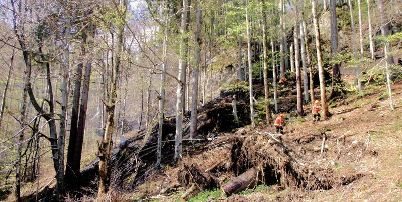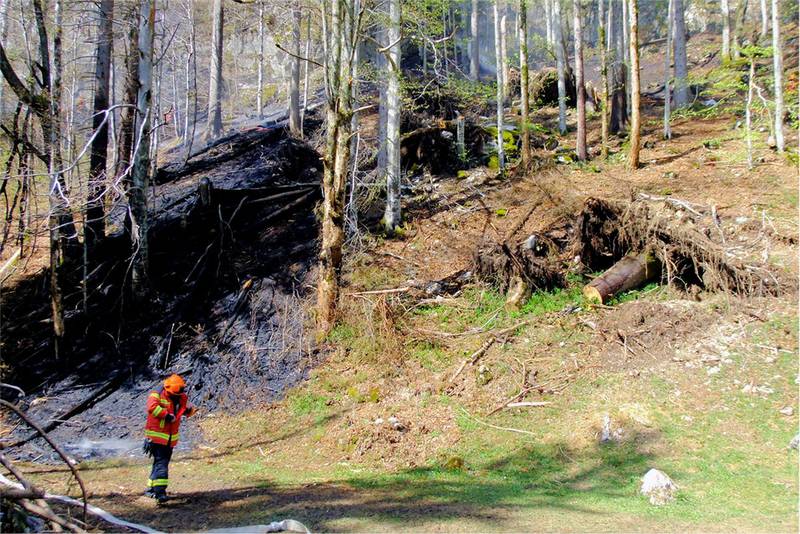 Ein Landwirt verbrannte dort sogenannten Schlagabraum. Im steilen Gelände griff das Feuer auf die trockene Wiese und den Wald über. Betroffen war eine Fläche von 20x50 Meter. Erst der Feuerwehr gelang es, den Brand zu löschen. Allfällige Glutnester im Waldboden wurden durch eine Brandwache überwacht und gelöscht. Die Polizei weist darauf hin, dass die Böden in Wäldern und auf Wiesen sehr trocken sind.