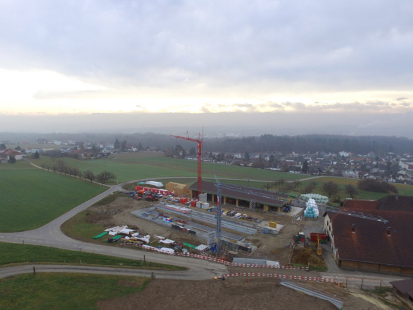 Zügig schreiten die Bauarbeiten an den neuen Ökonomiegebäuden am Bildungszentrum Wallierhof in Riedholz SO, trotz der teilweise winterlichen und stürmischen Witterung, voran.