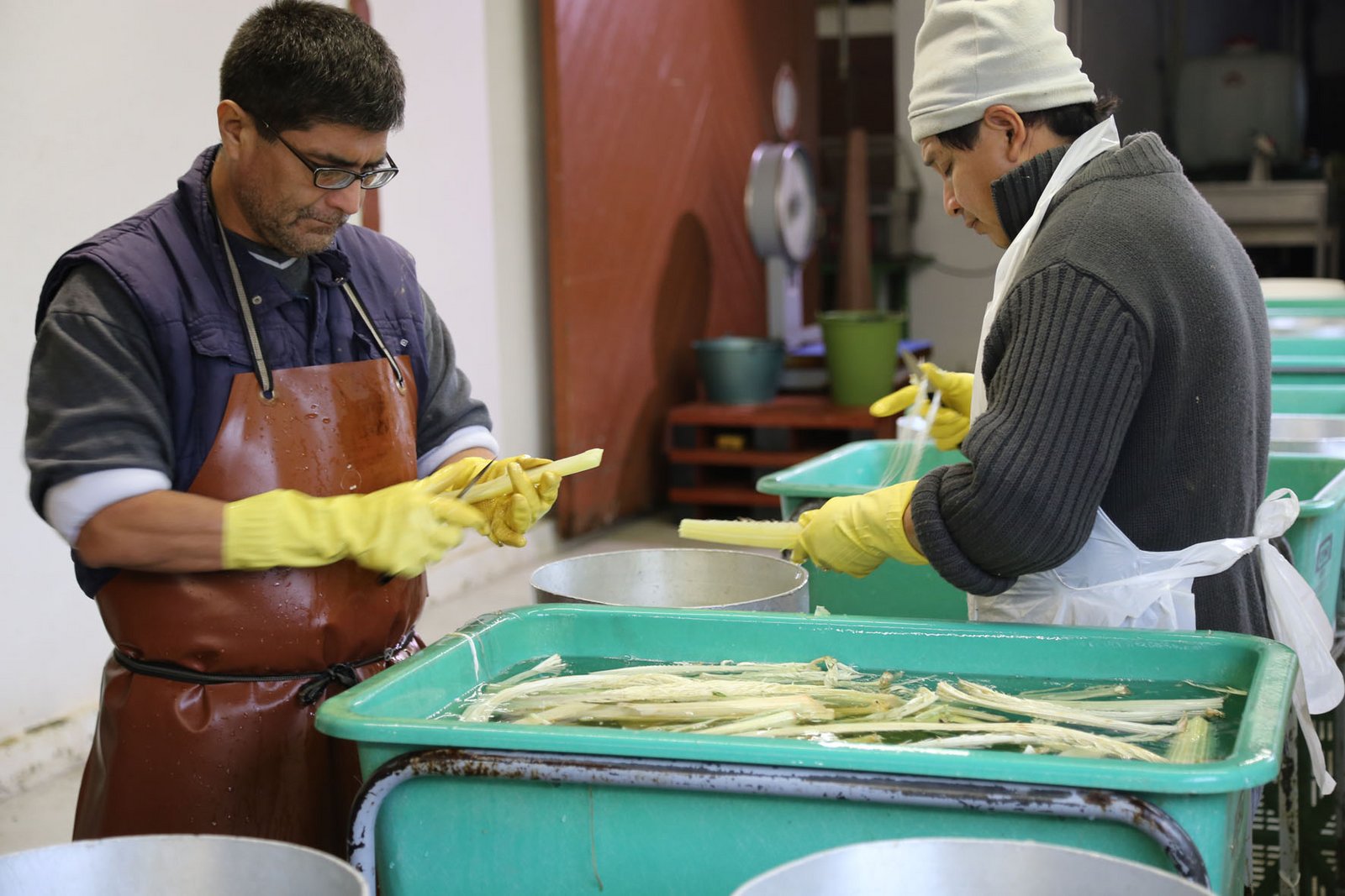 "Eine Mechanisierung der Produktion bietet sich nicht an. Die Ernte wird manuell gemacht, genauso das Rüsten. Eben traditionell", sagt Pierre Boehm. In seinem Betrieb baut Boehm nicht nur die Pflanze an, er verarbeitet sie auch und verkauft die Spezialität in Einmachgläsern.