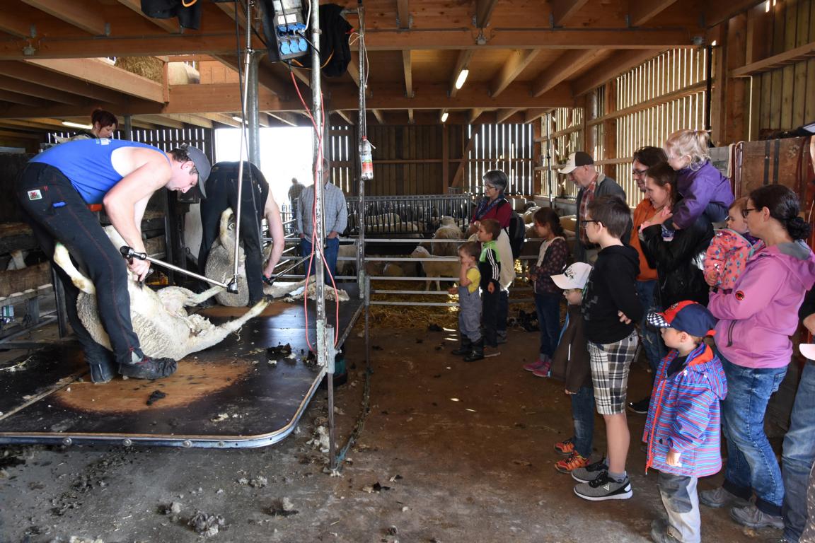 Die drei Profi-Schafscherer Andy-Fuchs aus Weinfelden TG, Jack Fagan und sein Cousin James Fagan aus Neuseeland legten ein bewundernswertes Tempo bei ihrer Arbeit hin. Zwei, maximal drei Minuten brauchten sie, um einem Schaf das Fell wegzurasieren, welches am Schluss praktisch an einem Stück – wie ein Wollpullover übrig blieb.