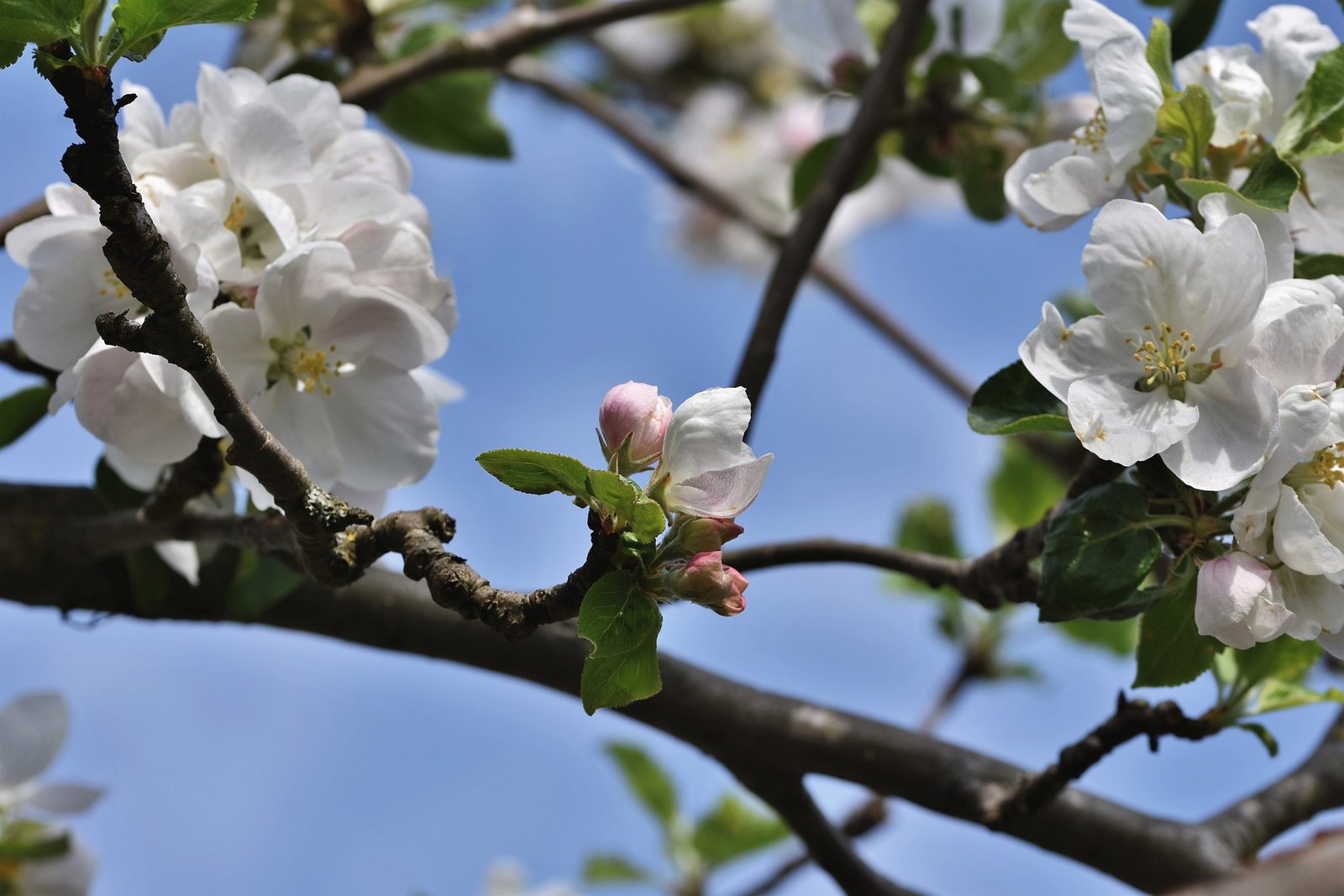 Je nach Entwicklungsstadium sind die Blüten an Obstbäumen unterschiedlich kälteempfindlich. Die Knospen an Apfelbäumen beispielsweise überstehen bis 4 Grad unter Null, geöffnete Blüten oder Jungfrüchte jeweils noch minus 2 Grad. (Bild Pixabay)
