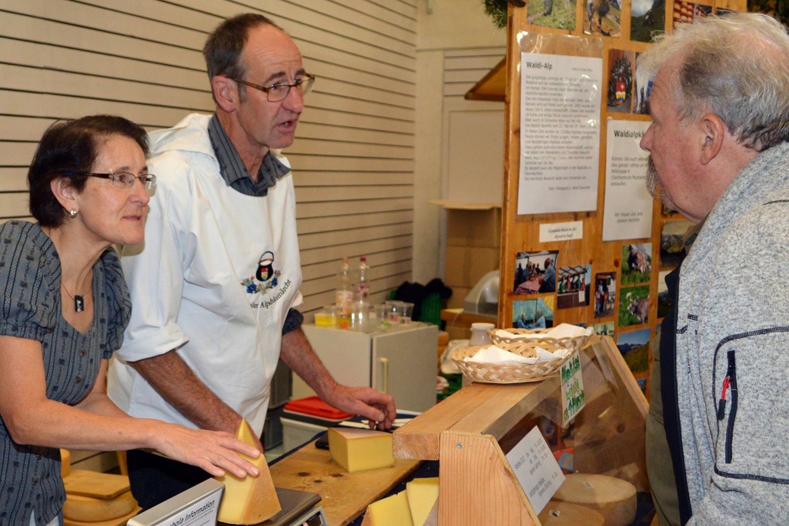 Erwin Spichtig, Präsident der IG Obwaldner Alpkäse, stellte einen etwas geringeren Besucheraufmarsch in Sarnen, dafür jedoch grössere Verkaufsmengen fest. Für den Alpnacher Josef Wallimann, der seit Jahren für seinen Sohn Martin und dessen Frau Claudia den Chretzenalp-Käse vermarktet, hat der Markt eine wichtige Bedeutung. "Damit können die Konsumenten den Alpkäse als einheimisches Produkt in ihrer Verschiedenheit kennenlernen und probieren." Wallimann kann im Direktverkauf jeweils problemlos fünf bis sechs Tonnen Käse absetzen.