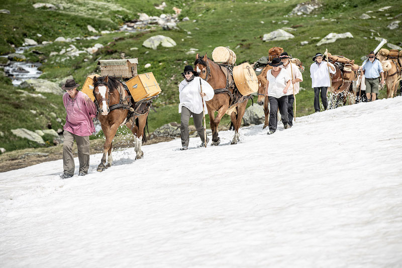 Der Abschluss des 7-tägigen Treks über die beiden Alpenpässe Oberalp und Furka ist der Bündner Kantonstag vom 23. Juli 2019 an der "Fête des Vignerons", wo die Säumergruppe von einer offiziellen Delegation empfangen wird.