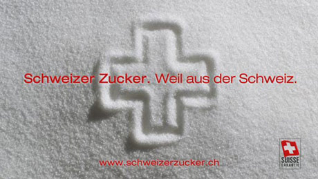Weil sie ihn brauchen, um ihre Produkte mit dem Schweizerkreuz ausloben zu können. Denn wer das machen will, muss mindestens 80% der hier verfügbaren Zutaten aus der Schweiz beziehen. So will es das Swissness-Gesetz. Wenigstens in diesem Fall verfängt der Werbespot. «Schweizer Zucker. Weil aus der Schweiz.»