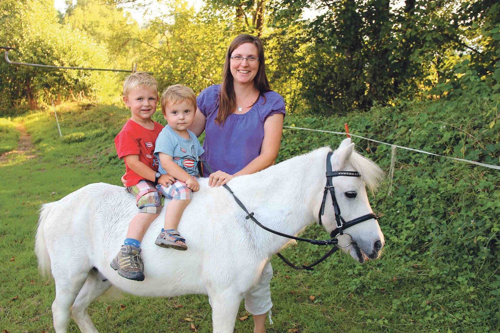 Eva Kammermann, welche die zweijährige Bäuerinnenausbildung absolvierte am Wallierhof, kümmert sich ums Haus, die Familie, die ganze Administration, das Dutzend Hühner, den halben Familiengarten, ihre eigenen sowie zwei Pensionspferde und den Hund.