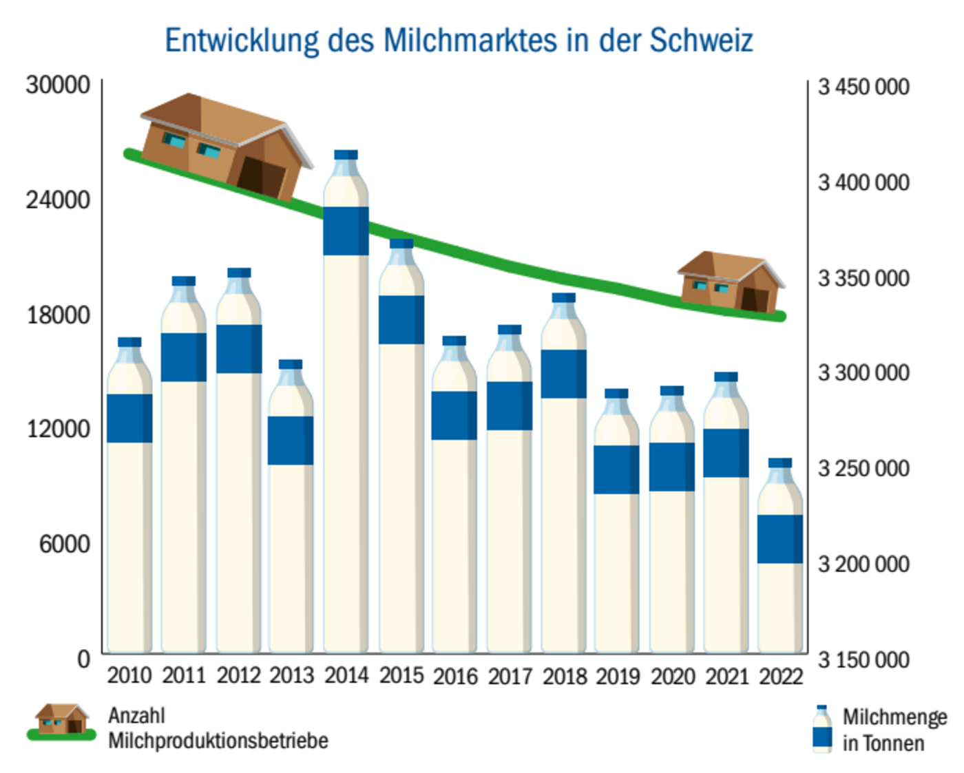 322 Landwirtschaftbetriebe haben im Jahr 2022 die Milchproduktion aufgegeben. Damit geht der Strukturwandel in der Milchproduktion weiter. Die verbliebenen 17 603 Milchproduzenten liefern im Schnitt 184 764 kg Milch ab, 748 kg mehr als im Vorjahr. Mittlerweile liefern 95 Betriebe über 1 Million Kilo Milch ab, 14 mehr als 2021. Auch flächenmässig sind die Milchproduktionsbetriebe gewachsen. So nahm die Fläche…