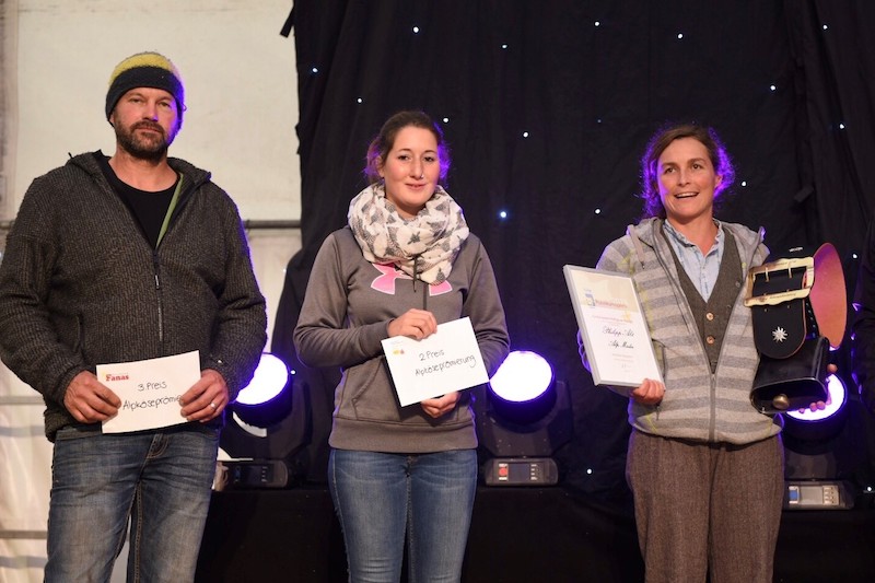 Sieger Alpkäsedegustation von rechts nach links: Platz 1: Alp Mäder (Küblis) / Platz 2: Alp Ascharina / Platz 3: Alp Vals (Seewis Dorf) (Bilder zVg)