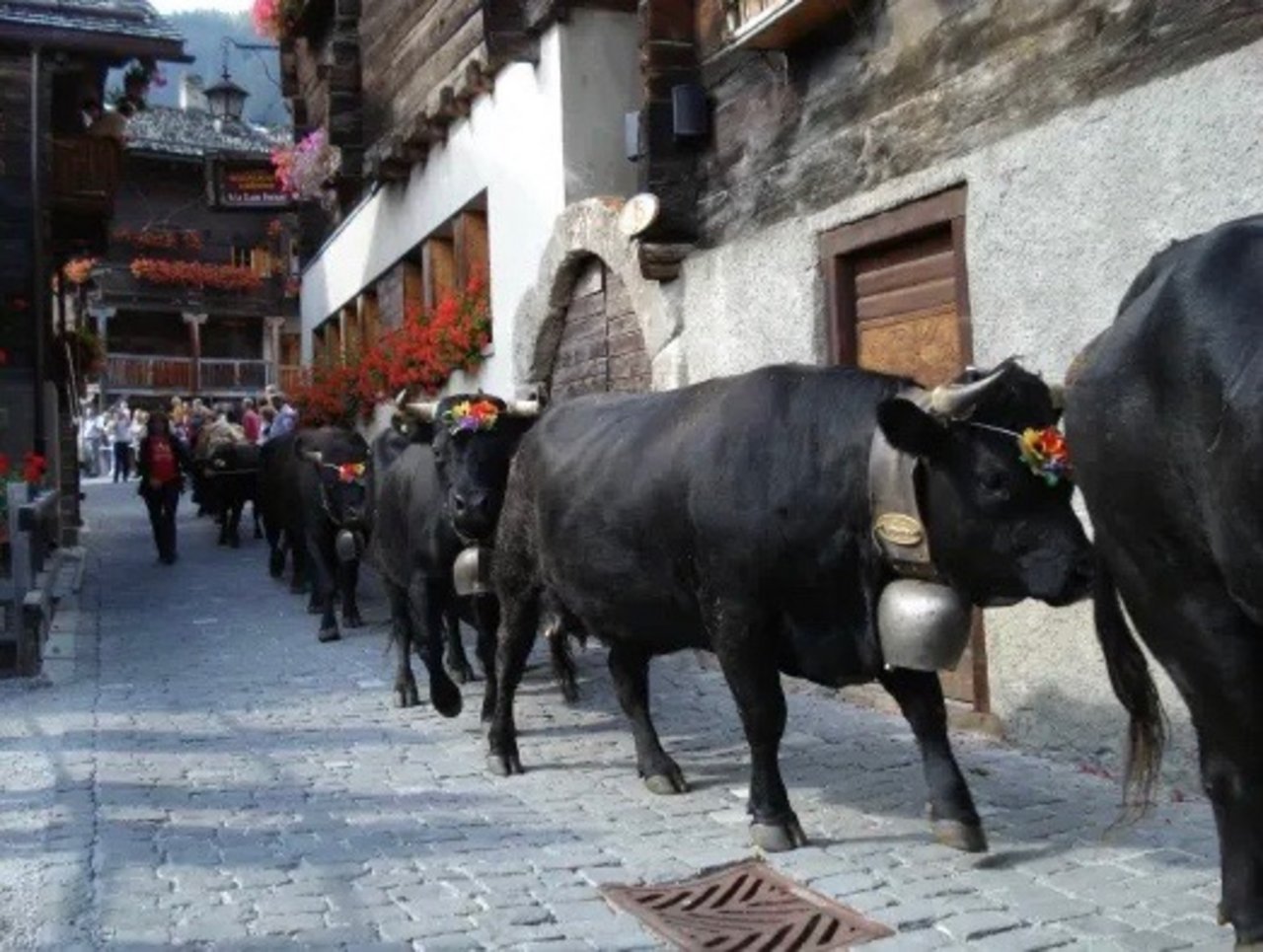 120 Ehringerkühe verbringen den Sommer auf der Alp Moiry. Über 1000 Kämpfe tragen die kleinen Kraftpakete dort oben untereinander aus. Am 21. September prozessieren die feierlich geschmückten Königinnen und die restliche Herde um 11.30 Uhr durch den alten Dorfkern von Grimentz VS. Es gibt Imbisszelte - dazu werden Alpkäse und einheimische Spezialitäten verkauft. Alle Infos zum Alpabzug in Grimentz.
