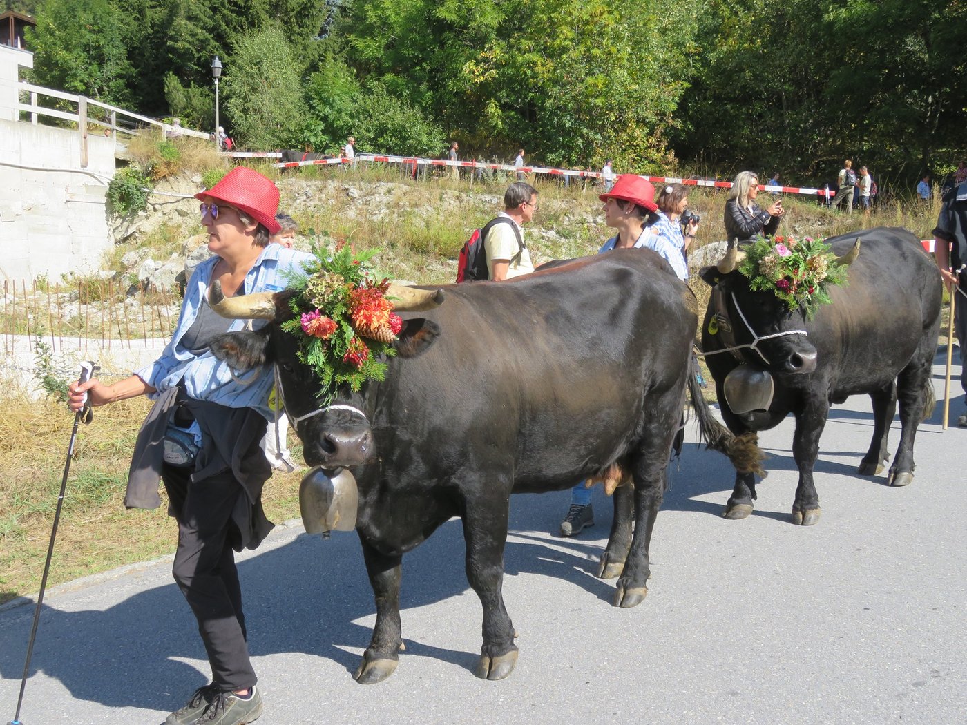 [IMG 5]Hier der Alpabzug in Blatten, mit den Eringerkühen, die man einzeln führen muss. Undenkbahr bei unseren vierzig Tieren: