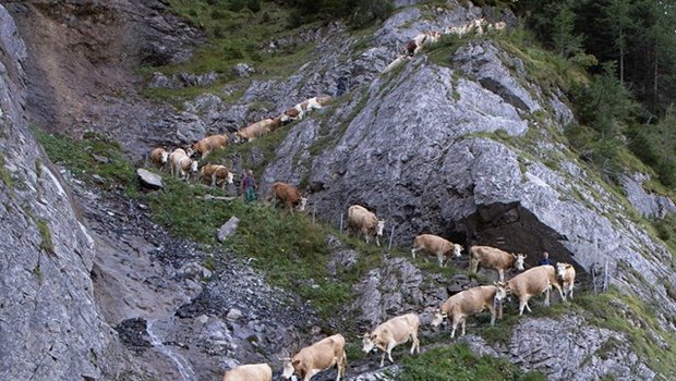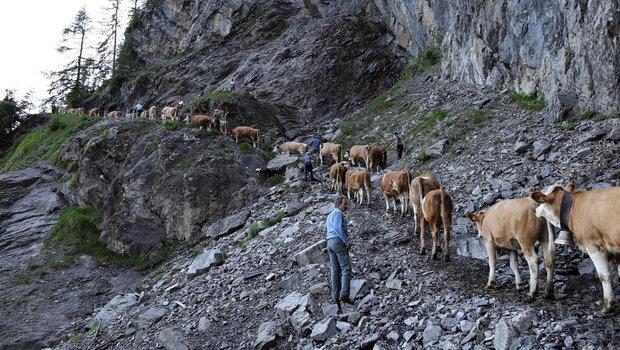 Kurz nach 5 Uhr gingen heute Morgen die ersten Lichter auf der Engstligenalp an. Für die 13 Sennen und ihre Tiere eigentlich nichts aussergewöhnliches. Doch der heutige Samstag war dann doch besonders: Die Züglete von der grössten Hochebene der westlichen Schweizer Alpen stand an (die BauernZeitung berichtete). Rund 600 Höhenmeter galt es dabei zu bezwingen – für einmal in umgekehrter Richtung. Für die Tiere sei dies Routine, erklärt Markus Grossen, Präsident der Alpschaft Engstligen laut einer Medienmitteilung: «Sie kennen den Weg seit sie klein sind und wissen genau, wo es hingeht. Und falls neue Kühe hinzukommen, werden diese irgendwo in der Mitte eingereiht, damit sie von der anderen lernen können.» Rund 1.5 Stunden benötigten die rund 235 Kälber und Rinder, 200 Milchkühe und 15 Geissen für den Weg ins Tal.